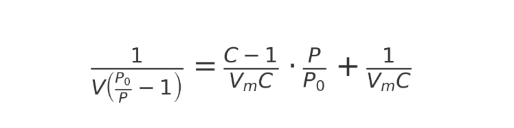 Dengan bersesuaian dengan persamaan BET, cerun (k) dan memintas (b) boleh diperolehi, dan yang berikut dapat dikira: