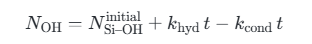 Antaranya, KHYD adalah pemalar kadar hidrolisis, KCond adalah pemalar kadar pemeluwapan dehidrasi, dan masa rawatan. Model ini secara kuantitatif dapat menggambarkan trend evolusi kumpulan hidroksil dengan rawatan haba atau rawatan haba basah.